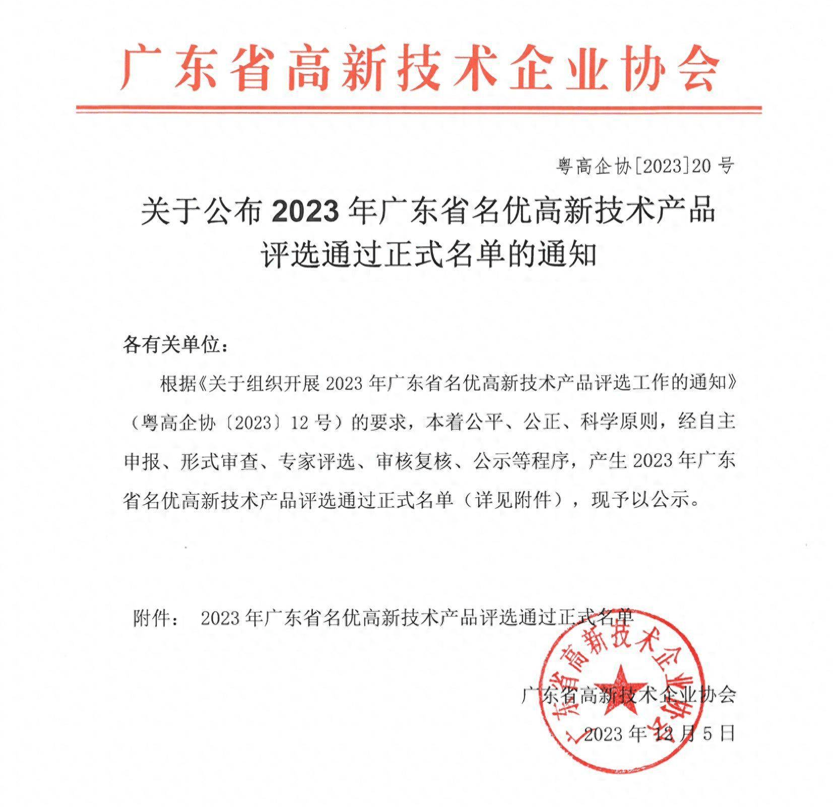 我司一產(chǎn)品獲評(píng)定為廣東省名優(yōu)高新技術(shù)產(chǎn)品